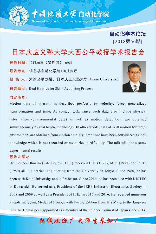 [12月20日]自動化學術論壇:日本慶義塾大學大西公平教授學術報告