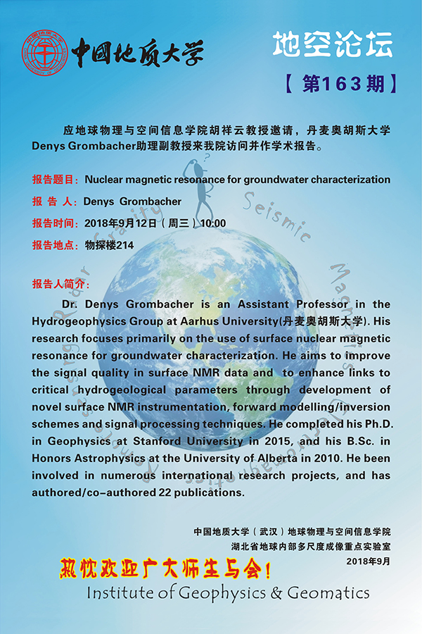 [9月12日]地空論壇:丹麥奧胡斯大學Denys Grombacher教授來我院訪問并作學術報告。